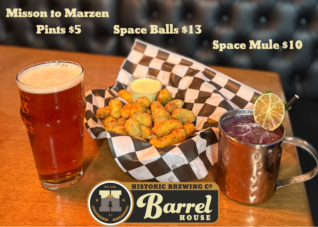 - Space Mule: Prickly Pear Vodka, lime, mint, and a splash Blueberry Spaceship box from Superstition Meadery.